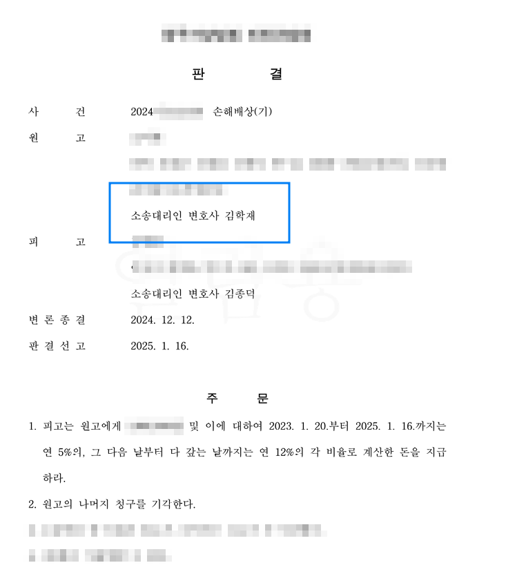 손해배상 소송이라 전부 승소는 힘든 사건이었습니다. 의뢰인분이 원하시는 액수를 받아냈습니다.