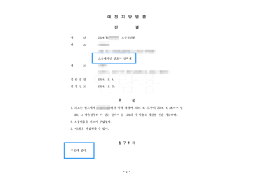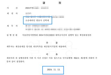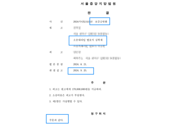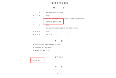 24년 8월 29일 대여금 소송 전부승소 하였습니다.
