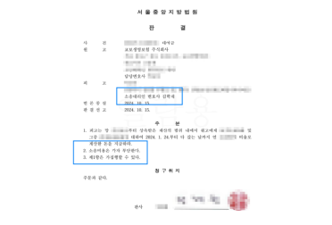 24년 8월 27일 임대차보증금 반환소송 전부승소 하였습니다.
