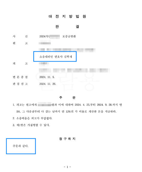2024년 11월 27일 보증금반환소송 전부승소
