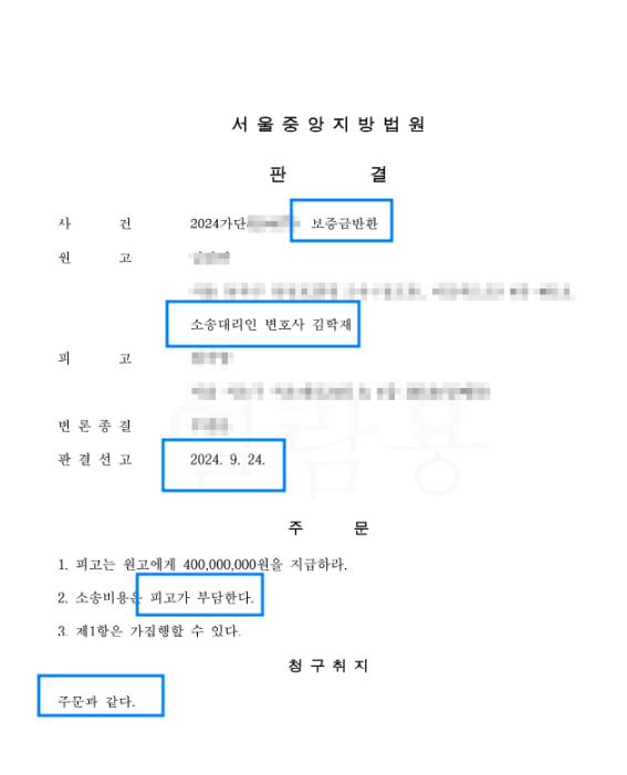 전부 승소 하였습니다. 빠르고 정확하게 이겼습니다. 의뢰인분은 2024년 7월 12일 방문하셨습니다. 제가 2024년 7월 16일 소장을 접수했고, 2024년 9월 24일 전부 승소했습니다. 2달 10일 걸렸네요.