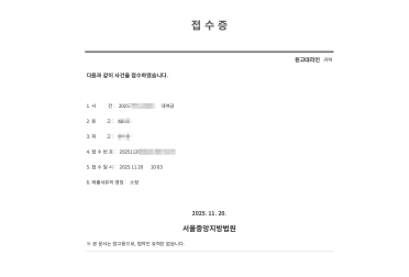 [서울중앙지방법원] 2025년 11월 20일 심**님 대여금 사건 위임