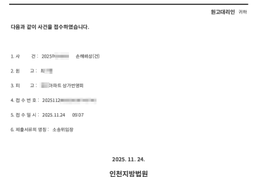 [인천지방법원] 2025년 11월 24일 최**님 손해배상 사건 위임