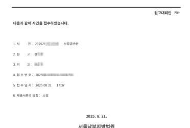 [서울남부지방법원] 2025년 8월 21일 김**님 보증금반환소송 사건 위임
