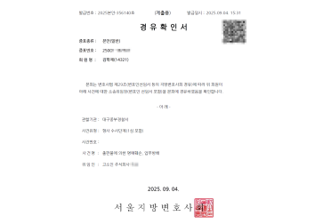 [대구중부경찰서] 2025년 9월 4일 주식회사** 출판물에 의한 명예훼손, 업무방해 사건 위임