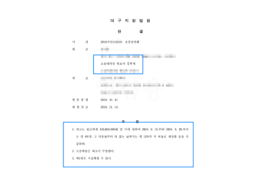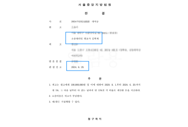 24년 8월 29일 대여금 소송 전부승소 하였습니다.