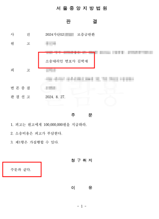 24년 8월 27일 임대차보증금 반환소송 전부승소 하였습니다.