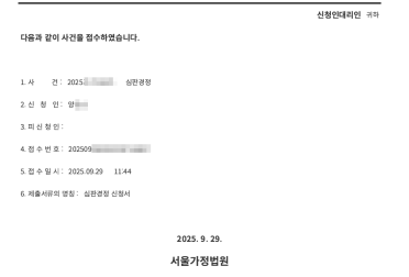 [서울가정법원] 2025년 9월 29일 양**님 심판경정 신청 사건위임