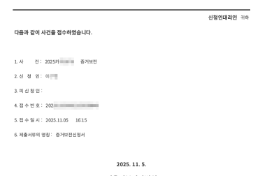 [서울서부지방법원] 2025년 11월 5일 이**님 증거보전 사건위임
