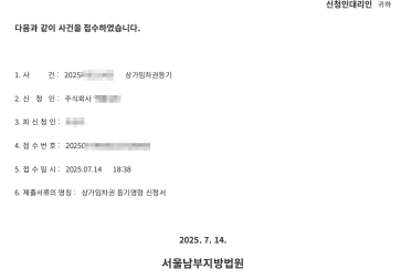 [서울남부지방법원] 2025년 7월 14일 주식회사**** 상가임차권등기 사건 위임