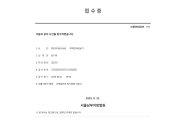 [서울남부지방법원] 2025년 8월 21일 김**님 주택임차권등기 사건 위임